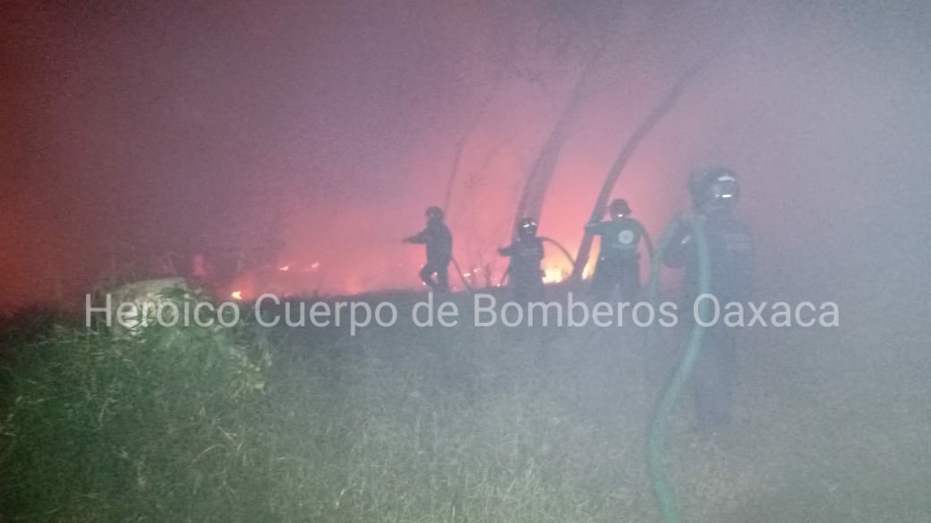 En acción coordinada con la @PolVial_GobOax y la Policía Municipal de San Jacinto Amilpas, el H. cuerpo de bomberos atiende servicio de incendio de pastizal sobre Avenida Gómez Morín y Calle Teposcolula. En el lugar se consumió pasto seco, basura y llantas.